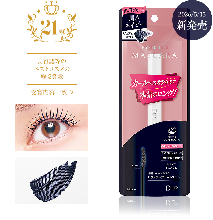 根本からまつげをしっかり持ち上げ、ひと塗りで強力カーブキープ。