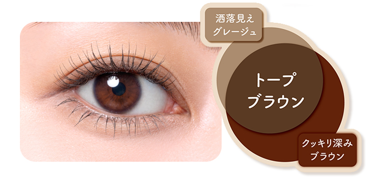 深みのあるブラウンにグレージュを絶妙にMIXした、グレージュニュアンスの軽やかなブラウン。黒や茶にはない、「抜け感」と「透明感」で洒落見えを演出。今っぽくこなれた目元に。